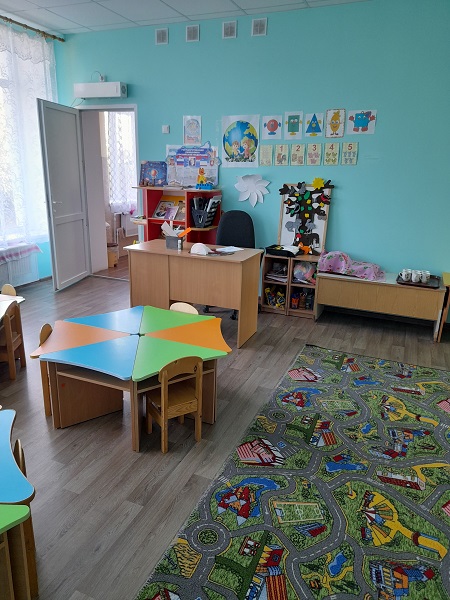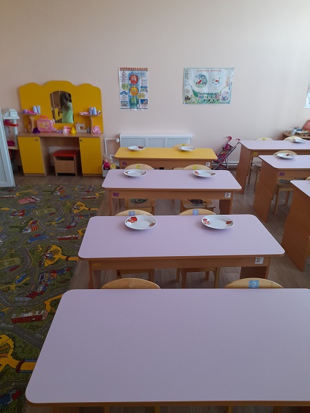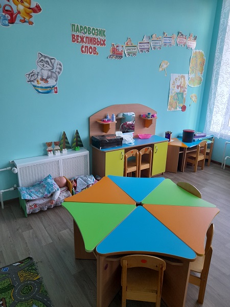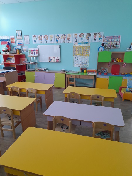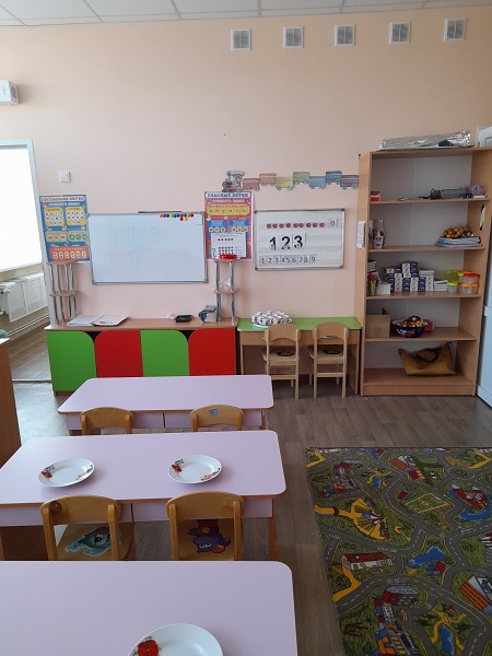 Группа «Радуга» | Раздевалка: Шкаф детский для одежды (5-секционные) - 4 Скамейки - 4 Игровая комната: Стол детский на металлических регулируемых ножках (6-местный) – 4 Стулья детские – 20 Стол для педагога – 1 Стол для педагога – 1 Стенка для детских игрушек и методических материалов для проведения учебно-воспитательного процесса – 1 Спальня : Кровать детская одноместная – 18 Шкаф для методических и раздаточных пособий – 1 Раздаточная: Шкаф для посуды – 1 Стол – 1 Оборудование для раздачи пищи – 1 Моечные ванны (двойная) – 1 Игровая площадка: Навес – 1 Песочница – 1 Качели – 1 Скамейка – 2 Умывальник: Вешалка для полотенец – 20 Умывальники для детей – 4 Душ – 1