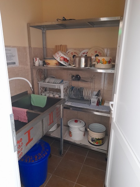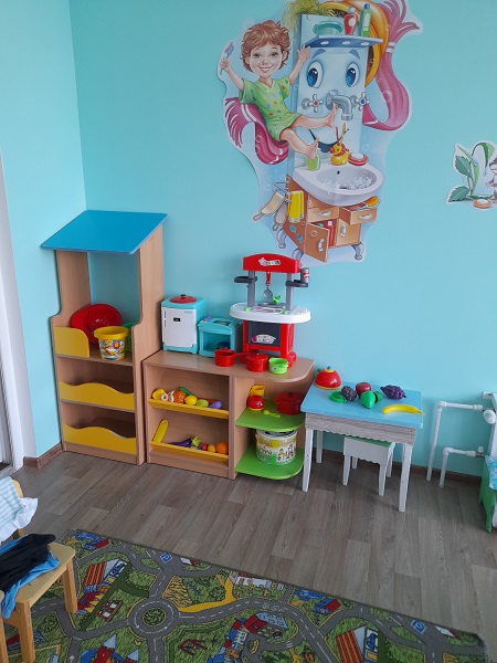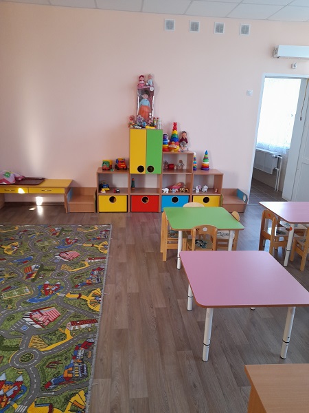 | Раздевалка: Шкаф детский для одежды (5-секционные) – 4 Скамейки - 4 Игровая комната: Стол детский на металлических регулируемых ножках (6-местный) – 4 Стулья детские – 20 Стол для педагога – 1 Стол для педагога – 1 Стенка для детских игрушек и методических материалов для проведения учебно-воспитательного процесса – 1 Спальня : Кровать детская одноместная – 20 Шкаф для методических и раздаточных пособий – 1 Раздаточная: Шкаф для посуды – 1 Стол – 1 Оборудование для раздачи пищи – 1 Моечные ванны (двойная) – 1 Игровая площадка: Навес – 1 Песочница – 1 Качели – 1 Скамейка – 2 Умывальник: Вешалка для полотенец – 20 Умывальники для детей – 4 Душ – 1