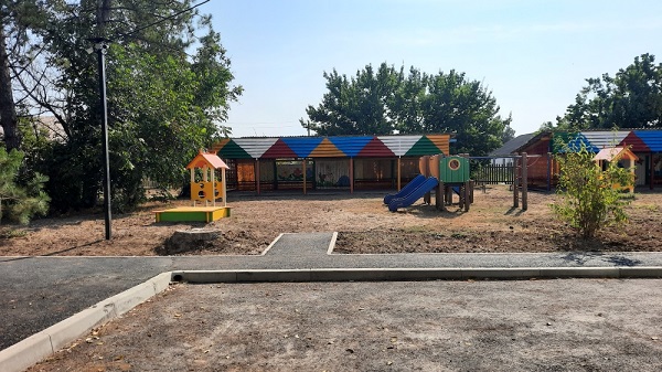 | Раздевалка: Шкаф детский для одежды (5-секционные) – 4 Скамейки - 4 Игровая комната: Стол детский на металлических регулируемых ножках (2-местный) – 8 Стулья детские – 20 Стол для педагога – 1 Стол для педагога – 1 Стенка для детских игрушек и методических материалов для проведения учебно-воспитательного процесса – 1 Спальня : Кровать детская одноместная – 18 Шкаф для методических и раздаточных пособий – 1 Раздаточная: Шкаф для посуды – 1 Стол – 1 Оборудование для раздачи пищи – 1 Моечные ванны (двойная) – 1 Игровая площадка: Навес – 1 Песочница – 1 Качели – 1 Скамейка – 2 Умывальник: Вешалка для полотенец – 20 Умывальники для детей – 4 Душ – 1