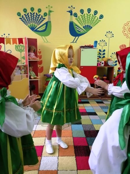 Матрешки привлекают внимание своей красотой и огромным разнообразием росписи. Ребята с большим интересом рассматривали матрешек, их яркие нарядные костюмы: сарафаны, платки, а также играли с ними.